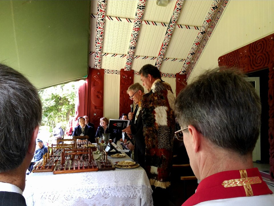 - The powhiri and service of worship at the Church’s national marae at Ohope, hosted by Te Aka Puaho, was very special, overcoming all the challenges of weather, logistics and a crummy sound system. One of the real highlights for me was when Richard Dawson presented the new moderator, Ray Coster, with a copy of the church’s confession of faith, Kupu Whakapono, written in Te Reo Maori, followed by a sung version led by Malcolm Gordon. The Assembly was last held at the marae in 1984 – too long ago – and this Assembly marked, in a number of significant ways, including Wayne Te Kaawa’s rousing speech during the Assembly business time, a maturation in the church’s bicultural journey.