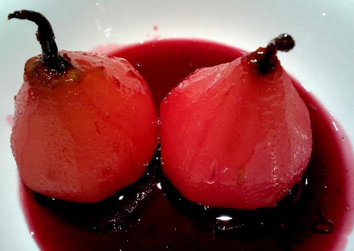 Remove the pears carefully onto a platter and return the liquid back to heat and boil vigorously until the liquid has reduced to thick syrup. Don’t overcook it or you’ll burn it and stink the house out (like I did the first time)