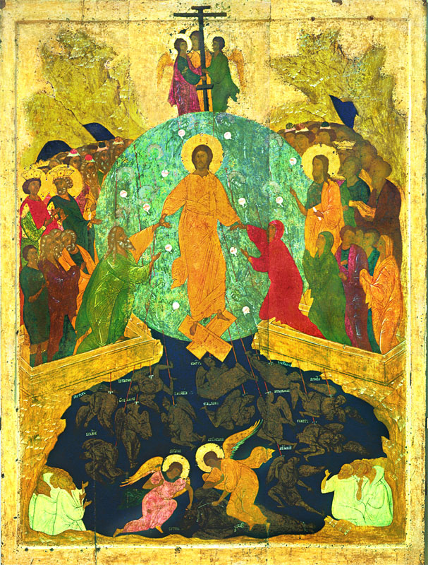 ‘When Hell and death and their wicked ministers saw that, they were stricken with fear, they and their cruel officers, at the sight of the brightness of so great light in their own realm, seeing Christ of a sudden in their abode, and they cried out, saying: We are overcome by thee. Who art thou that art sent by the Lord for our confusion? Who art thou that without all damage of corruption, and with the signs of thy majesty unblemished, dost in wrath condemn our power? Who art thou that art so great and so small, both humble and exalted, both soldier and commander, a marvelous warrior in the shape of a bondsman, and a King of glory dead and living, whom the cross bare slain upon it? Thou that didst lie dead in the sepulchre hast come down unto us living and at thy death all creation quaked and all the stars were shaken and thou hast become free among the dead and dost rout our legions. Who art thou that settest free the prisoners that are held bound by original sin and restorest them into their former liberty? Who art thou that sheddest thy divine and bright light upon them that were blinded with the darkness of their sins? After the same manner all the legions of devils were stricken with like fear and cried out all together in the terror of their confusion, saying: Whence art thou, Jesus, a man so mighty and bright in majesty, so excellent without spot and clean from sin? For that world of earth which hath been always subject unto us until now, and did pay tribute to our profit, hath never sent unto us a dead man like thee, nor ever dispatched such a gift unto Hell. Who then art thou that so fearlessly enterest our borders, and not only fearest not our torments, but besides essayest to bear away all men out of our bonds? Peradventure thou art that Jesus, of whom Satan our prince said that by thy death of the cross thou shouldest receive the dominion of the whole world’. – ‘The Gospel of Nicodemus, or Acts of Pilate’, in The Apocryphal New Testament (Oxford: Clarendon Press, 1924), 20:1.