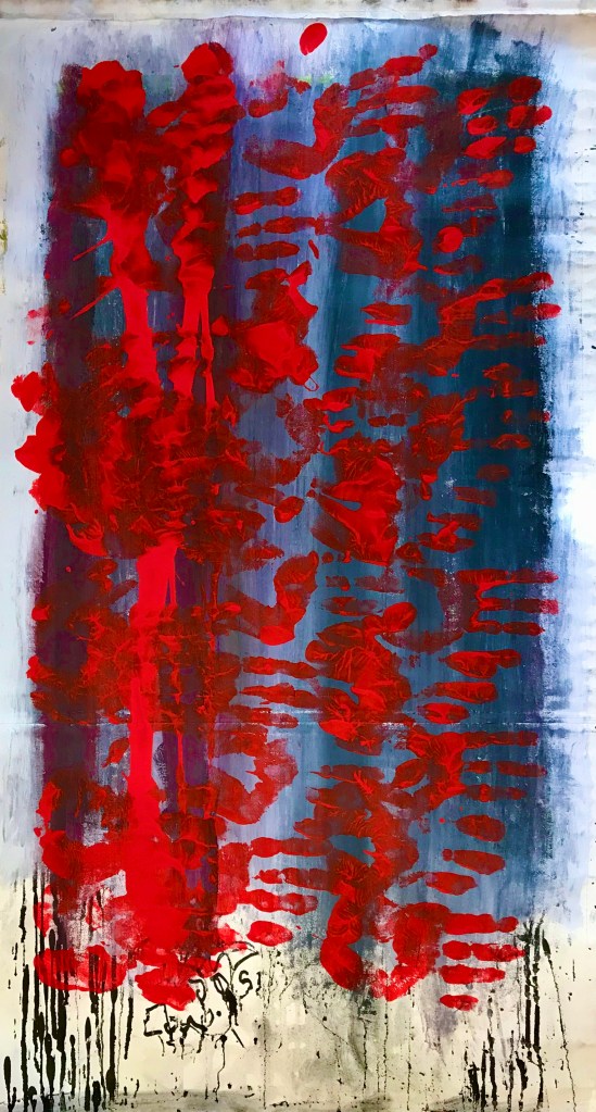 Galleria Jason Goroncy, COVID-19 (4), 2020. Acrylic and ink on canvas, 100 x 56 cm. Private collection. Jason Goroncy, Cruth-atharrachadh (Transfiguration), 2017. Mixed media on canvas, 76 x 61 cm. Private collection.